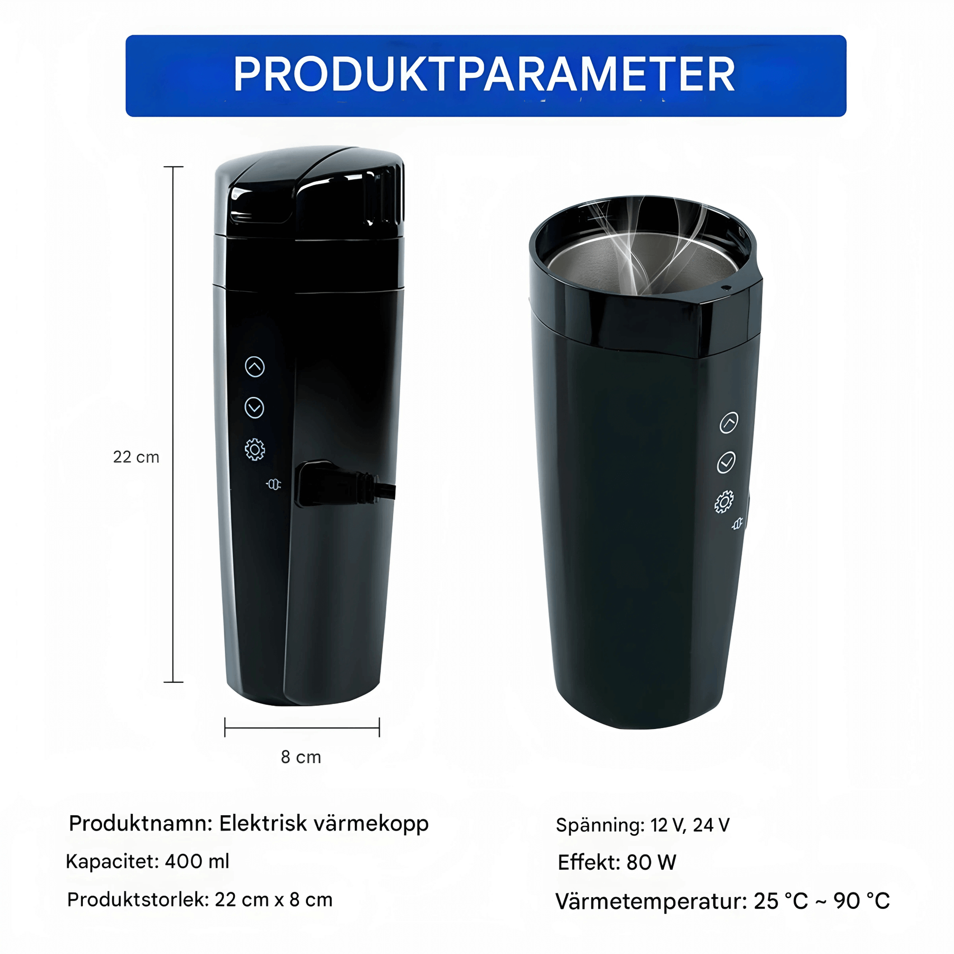 ALMA – Smart Bilmugg med Touchkontroll, LCD-display & Portabel Värmehållning