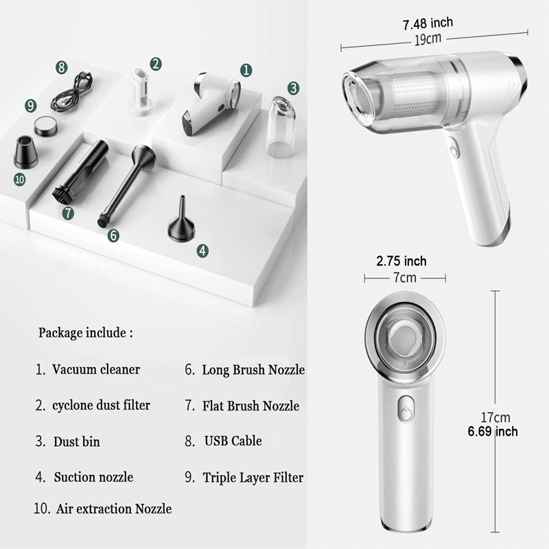 Den multifunktionella trådlösa dammsugaren är mer än bara en dammsugare. Den fungerar som en dammuppsamlare, en vatten-dammsugare för bilar eller andra situationer och till och med som ett luftinflationsverktyg. Denna mångsidighet gör den till ett oumbärligt verktyg för alla dina rengöringsbehov och ger dig mångsidighet och bekvämlighet.