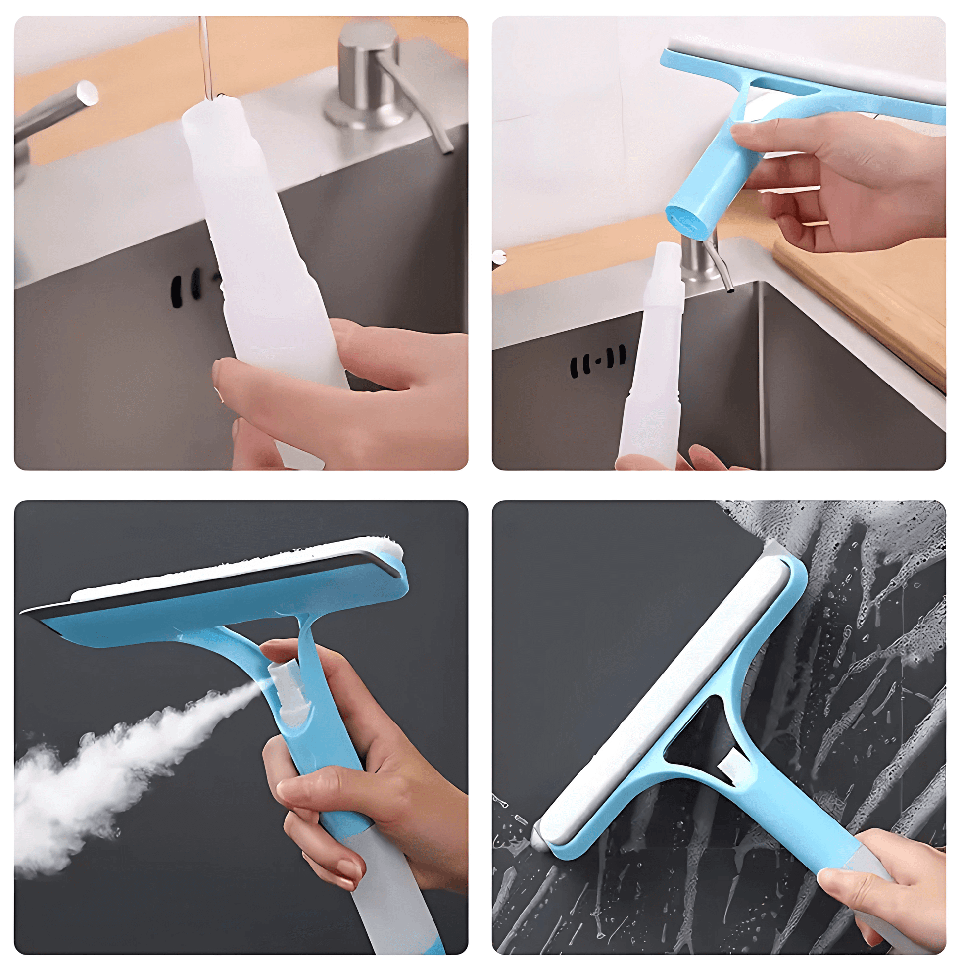 ClearSweep – 3-i-1 Fönsterskrapa med Spray, Svamp och Gummiblad för Hem och Bil