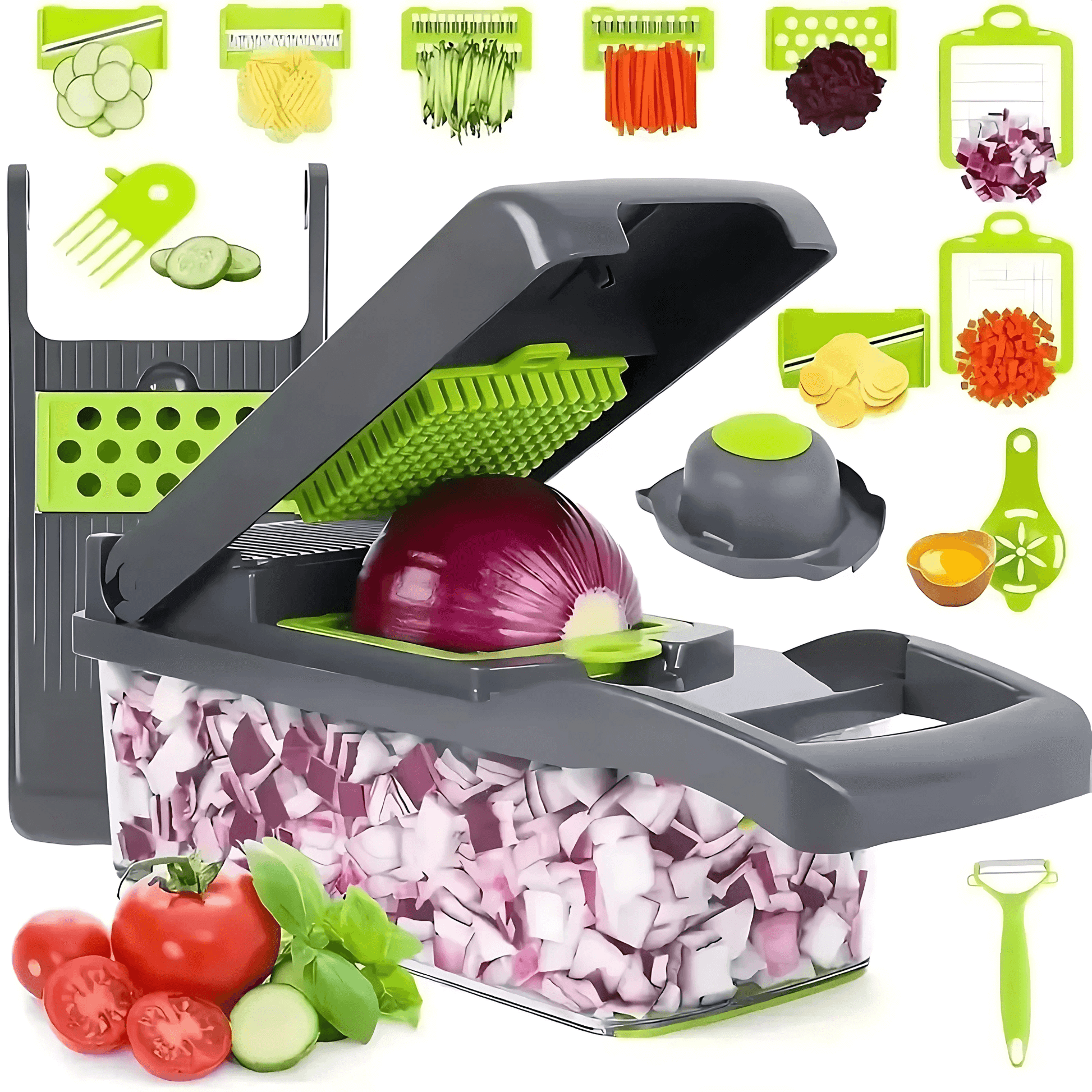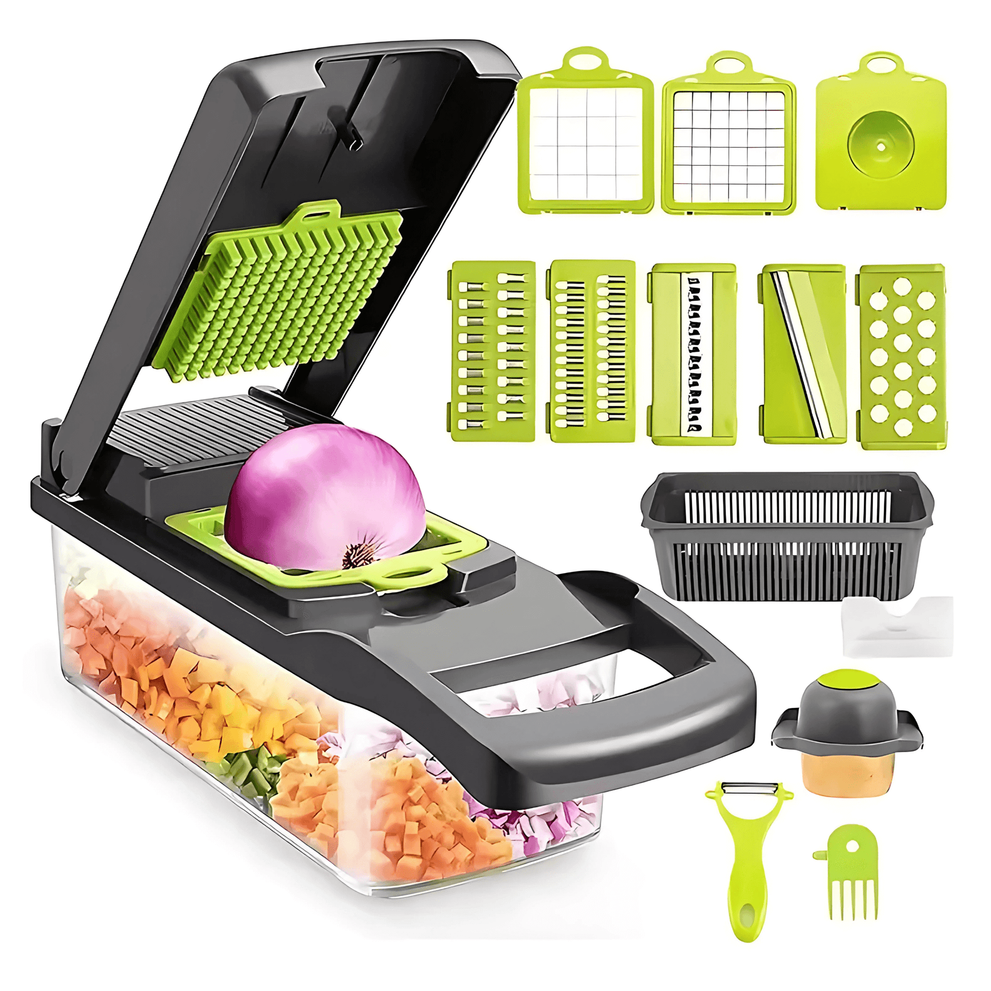 ELVIA – Multifunktionell Mandolin Grönsakshackare 14/16-delars Set med Skärblad & Tillbehör