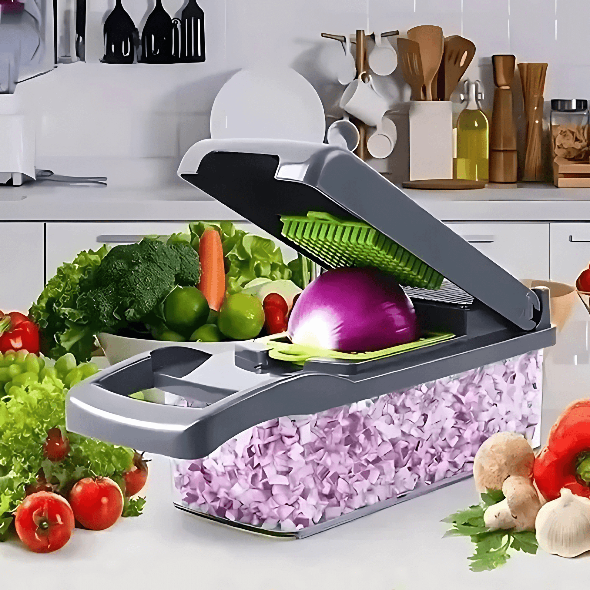 ELVIA är ett komplett köksredskap som kan förenkla och förbättra din grönsaksberedning. Genom att samla flera blad och tillbehör i ett och samma set kan den bidra till en smidigare matlagningsprocess, bättre kontroll och mer flexibilitet i köket. Det kan göra det enklare att hacka, skiva, riva eller tärna olika ingredienser på ett organiserat sätt, vilket kan underlätta vardagens matlagning.