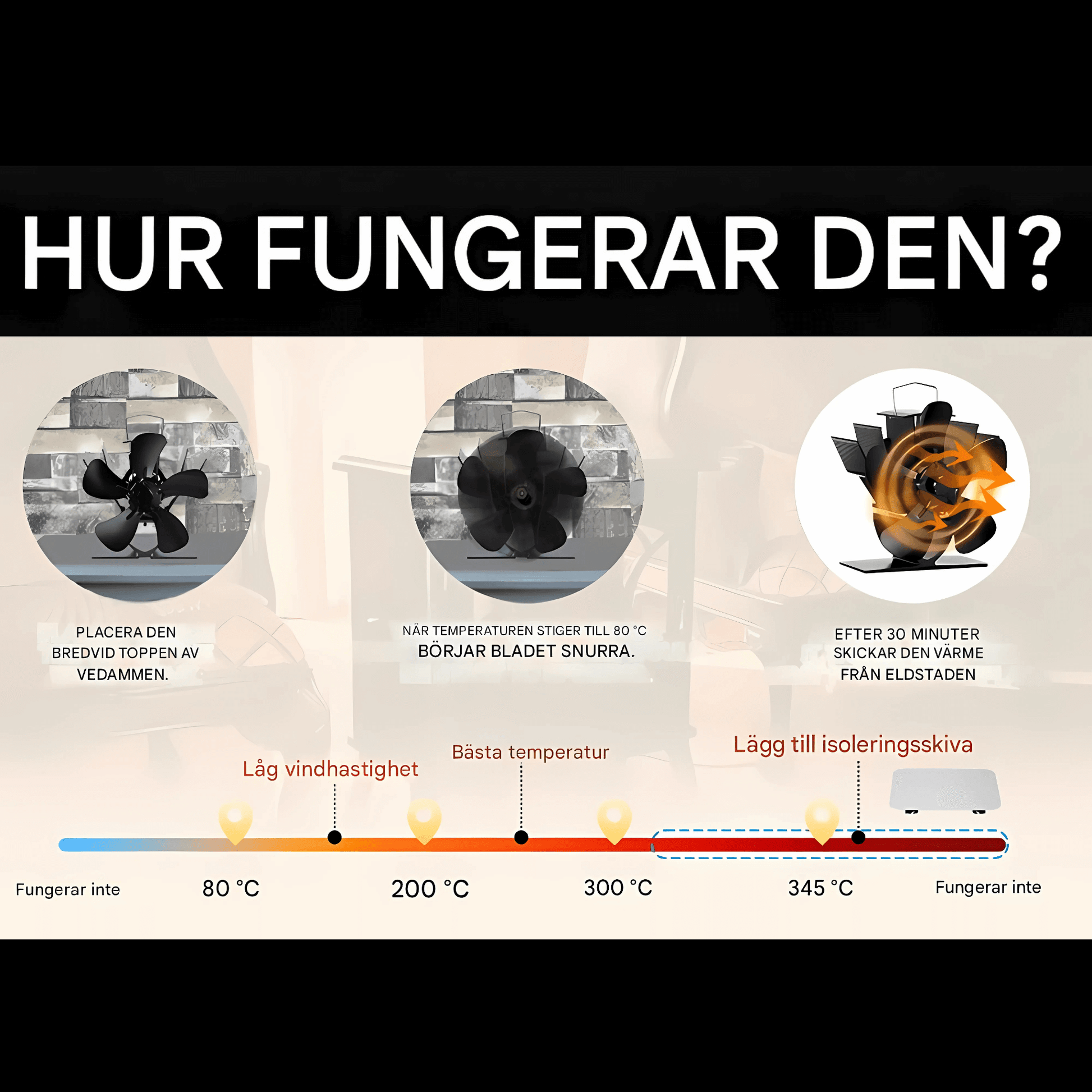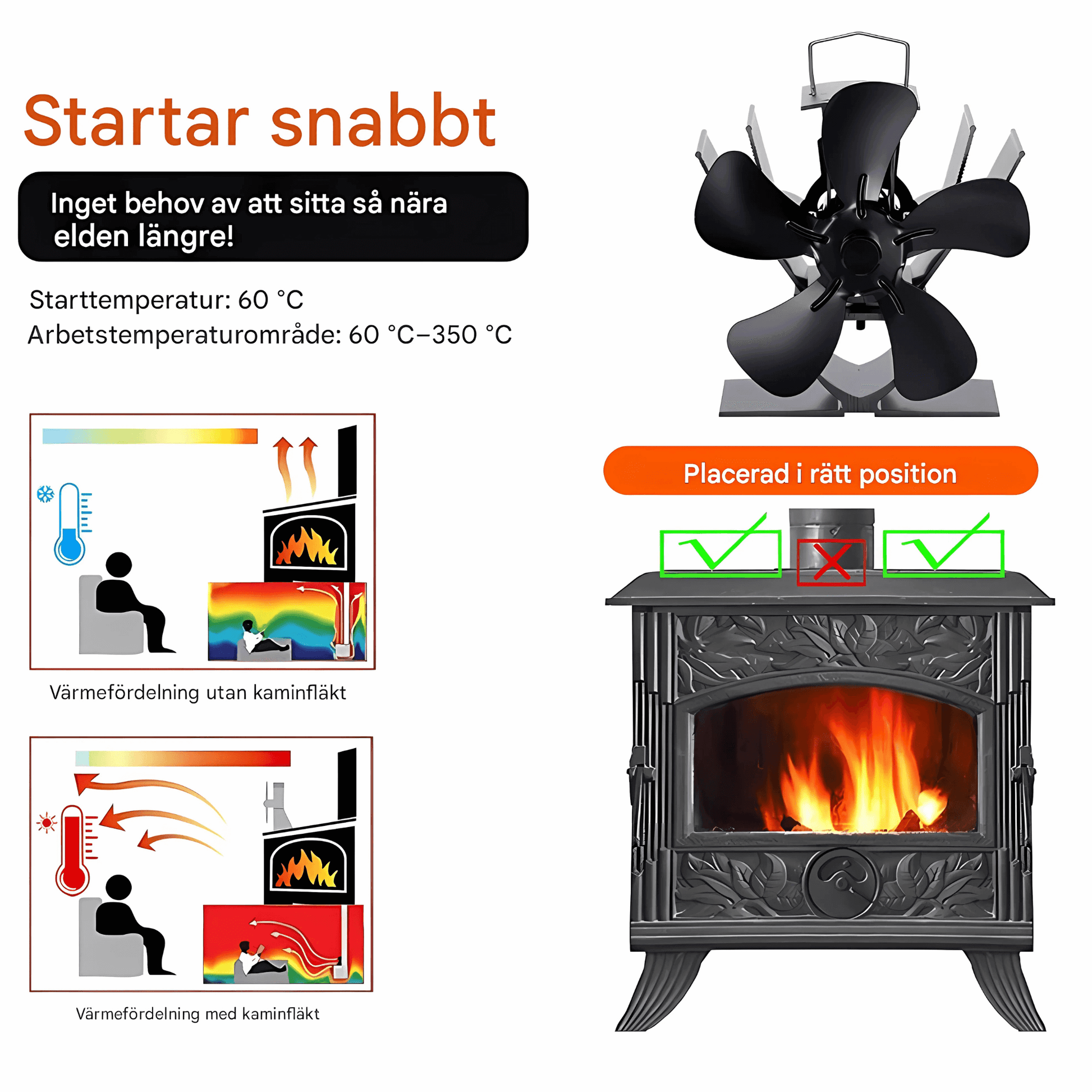 • 🔥 Värmedriven funktion – kan bidra till att cirkulera värme utan elektricitet eller batterier