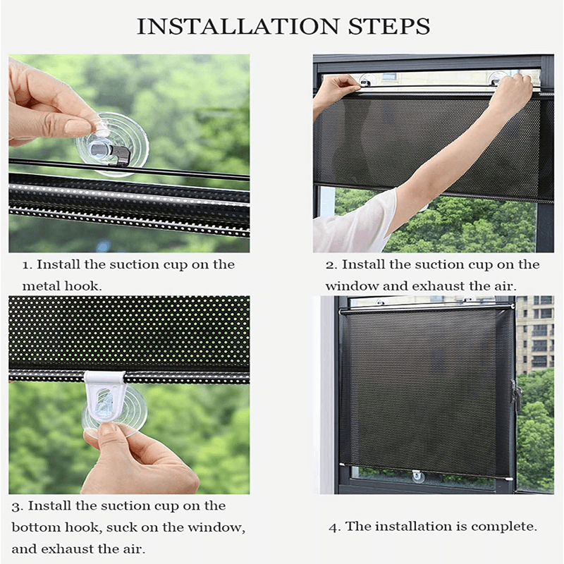 ✅ Lätt att installera och använda var som helst - Det är lätt att använda och passar för alla typer och storlekar på fönster. Dessa rullgardiner med sugkoppar kan placeras på vilken höjd som helst ovanför, nedanför eller mitt på fönstret och dras automatiskt tillbaka när du släpper.