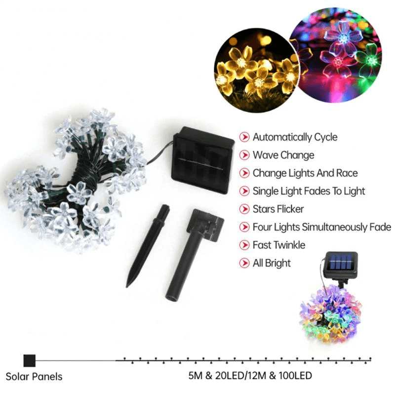 Led-Slingan som laddar under dagen och omvandlar solljus till elektrisk energi. Med en snabb laddning på 6-8 timmar kan de ge upp till 8-14 timmars förtrollande belysning på natten, vilket gör dem energieffektiva och kostnadseffektiva.