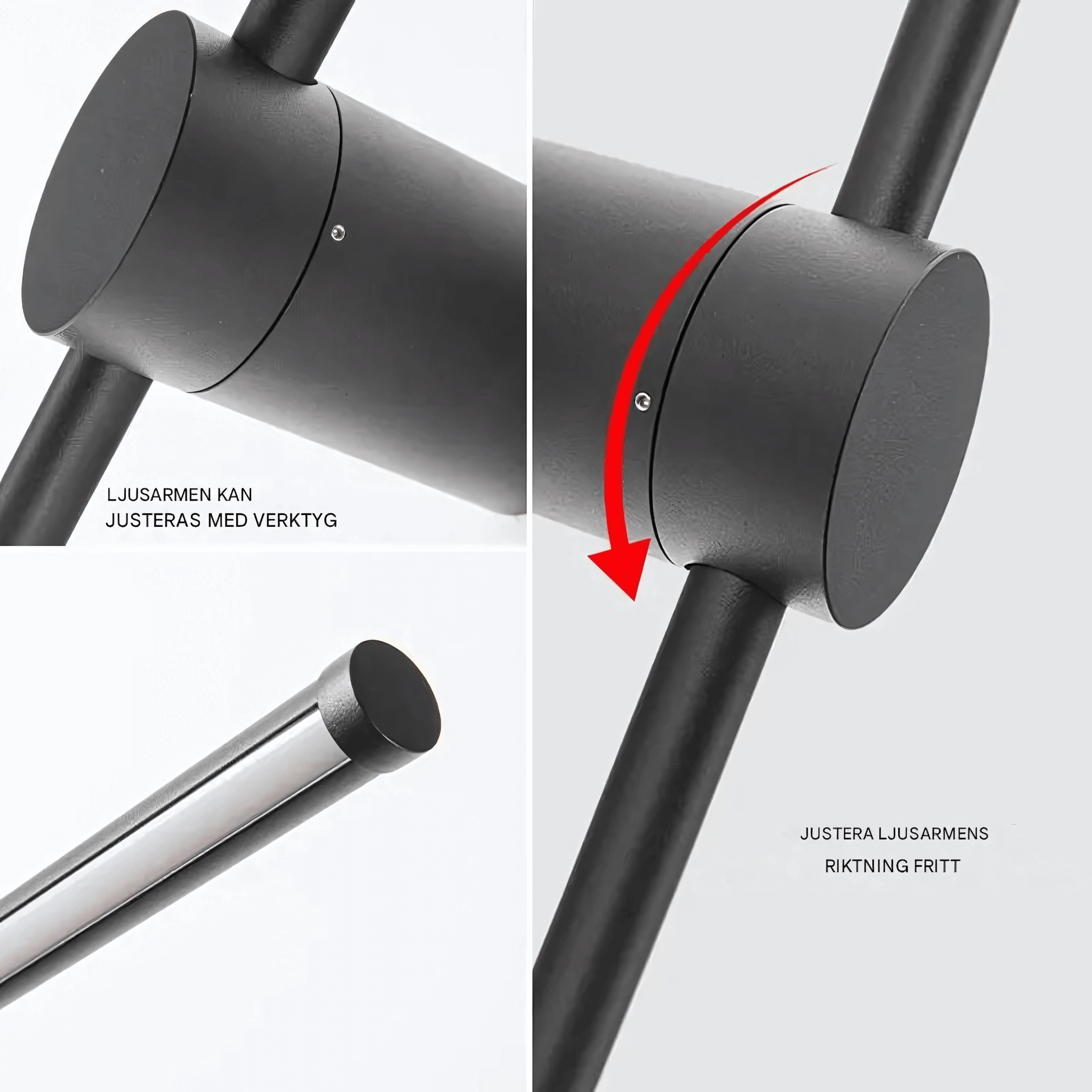Med JONAS kan du enkelt förvandla vilket rum som helst till en stilfull och inbjudande miljö. Den eleganta kombinationen av svart och guld tillsammans med den justerbara ljusriktningen kan göra det möjligt att skapa både funktionellt ljus och en varm, dekorativ atmosfär.