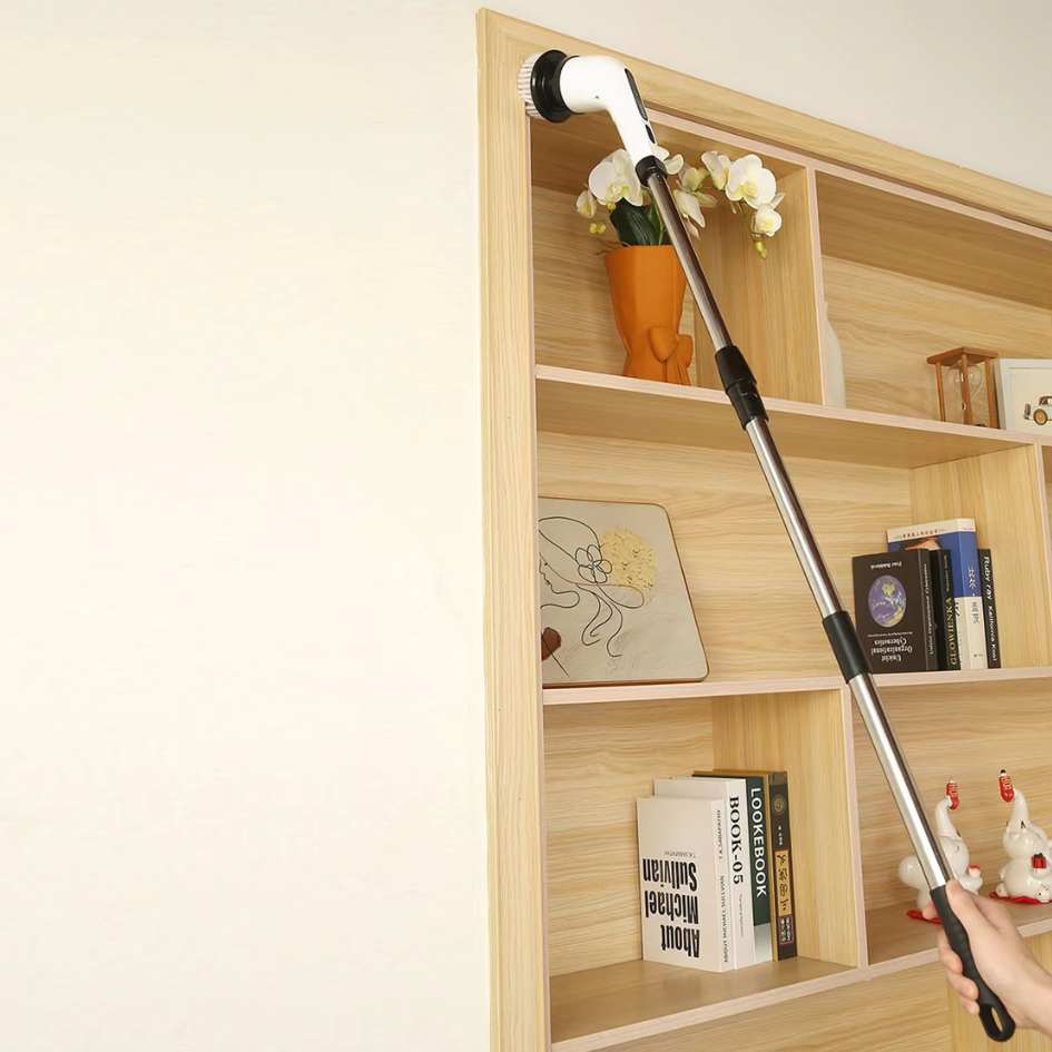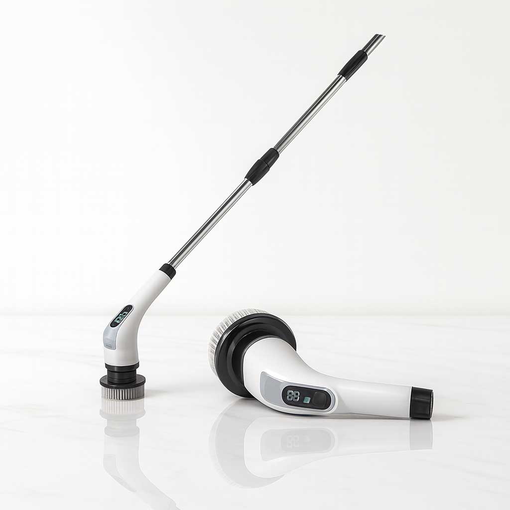 KEVIN - 9-i-1 Elektrisk Rengöringsborste Med Stav För Skonsam Städning fungerar i hela hemmet – kök, badrum, golv och mer. Med nio olika borsthuvuden kan du anpassa rengöringen efter varje yta utan att byta verktyg.