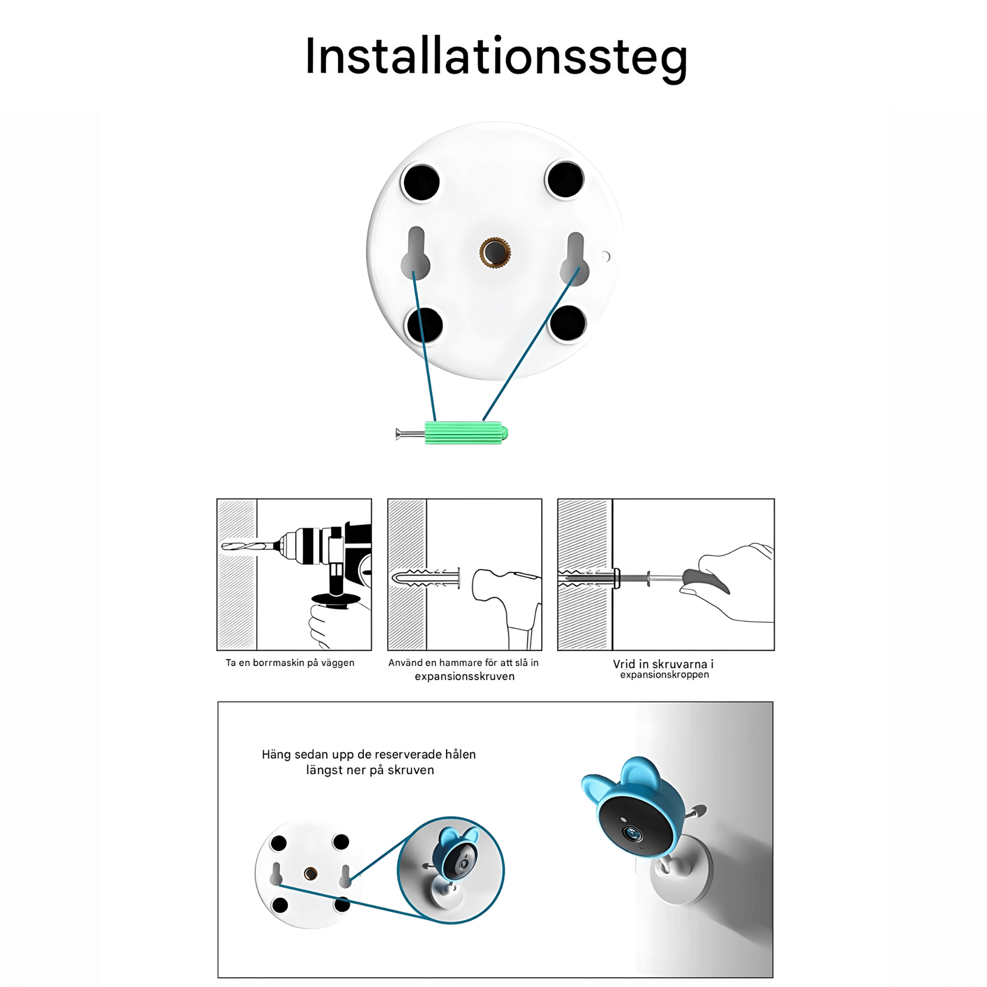 1. Placera kameran i barnrummet på en stabil yta eller väggmontering.