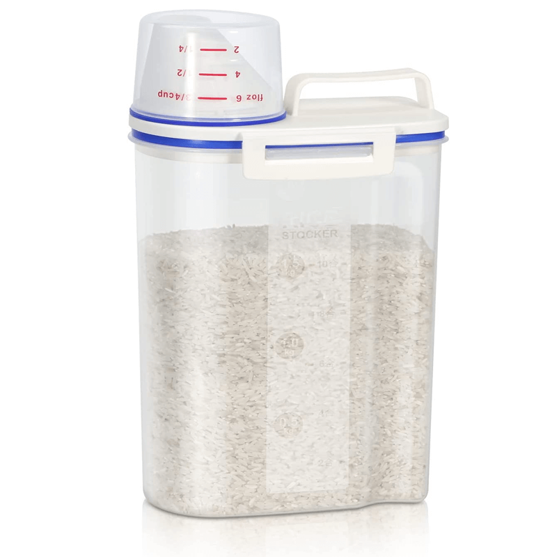 Mät, förvara och förenkla med vår plastbehållare med mätkopp - den perfekta lösningen för exakt portionering och bekväm förvaring.