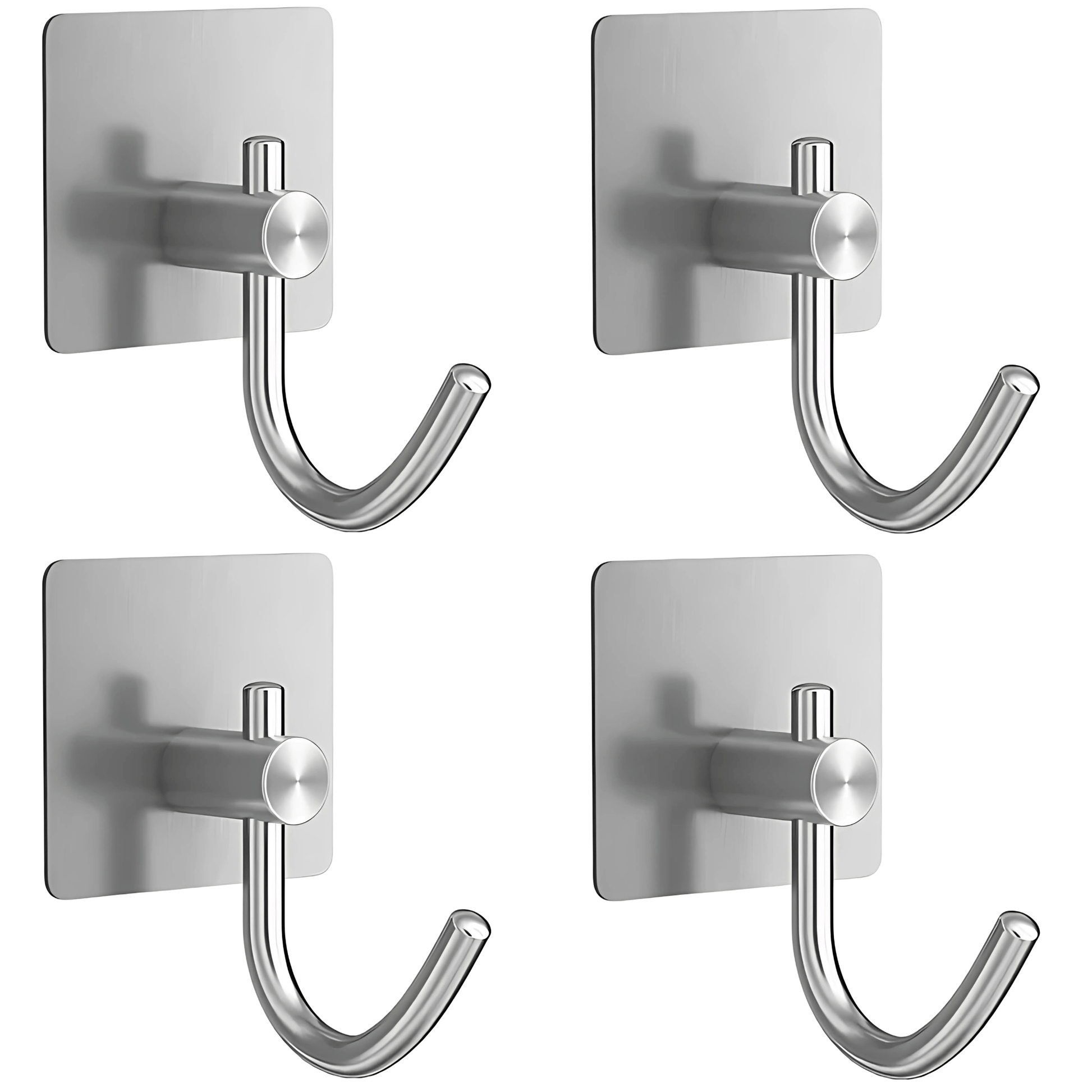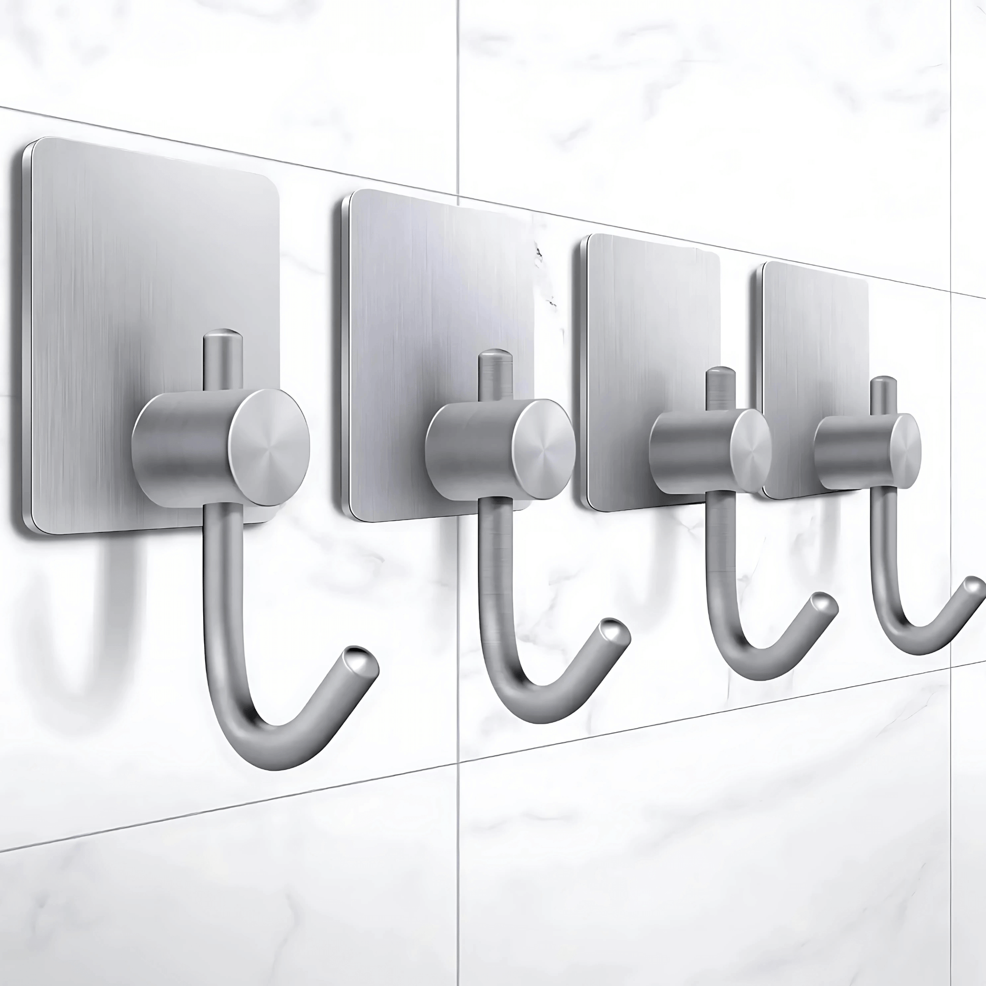 PrimeHook - 4-Pack | Rostfria Badkrokar med Självhäftande Fäste för Badrum och Kök