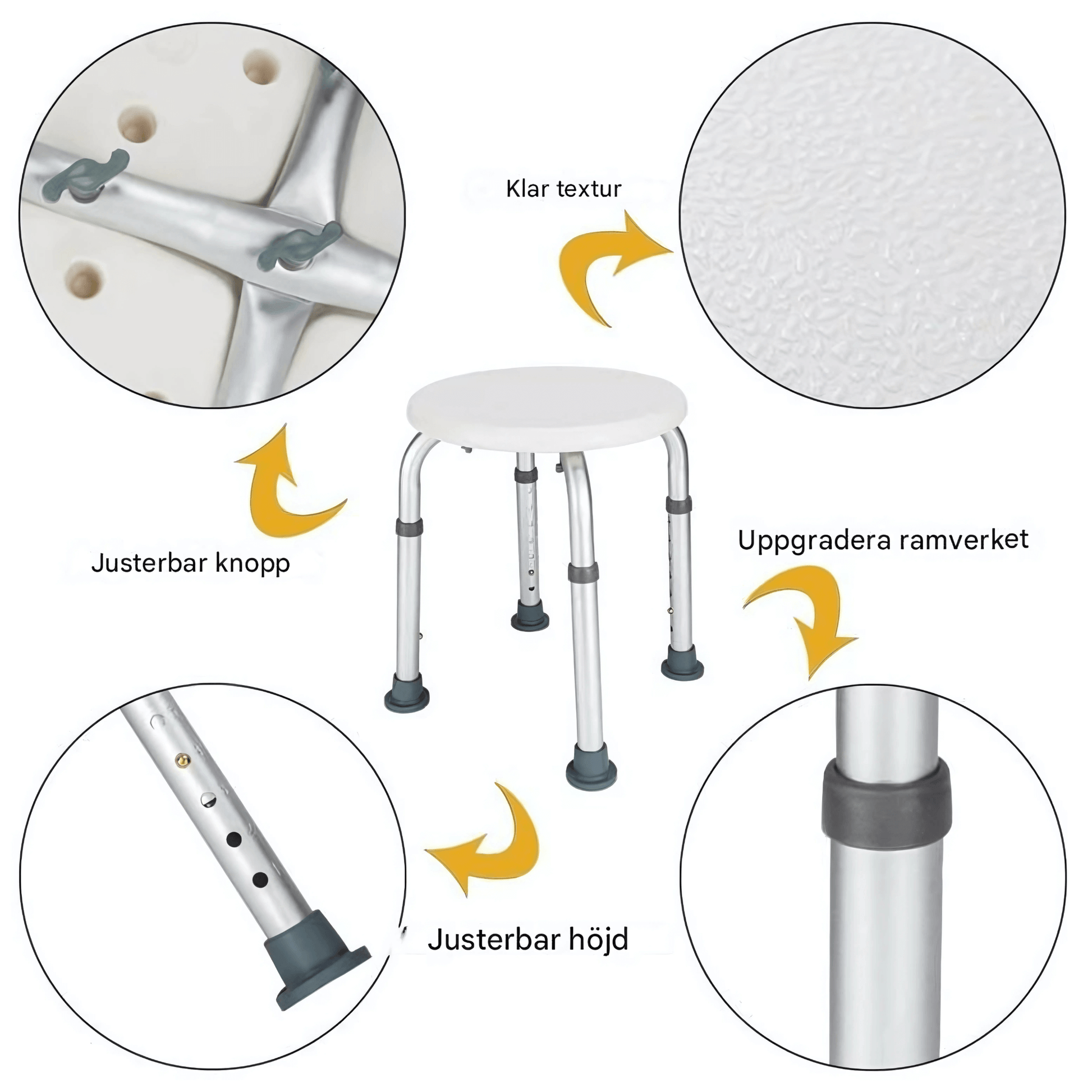 SitEase – Lätt & Höjdjusterbar Duschpall med Halkskydd och Stabil Aluminiumram