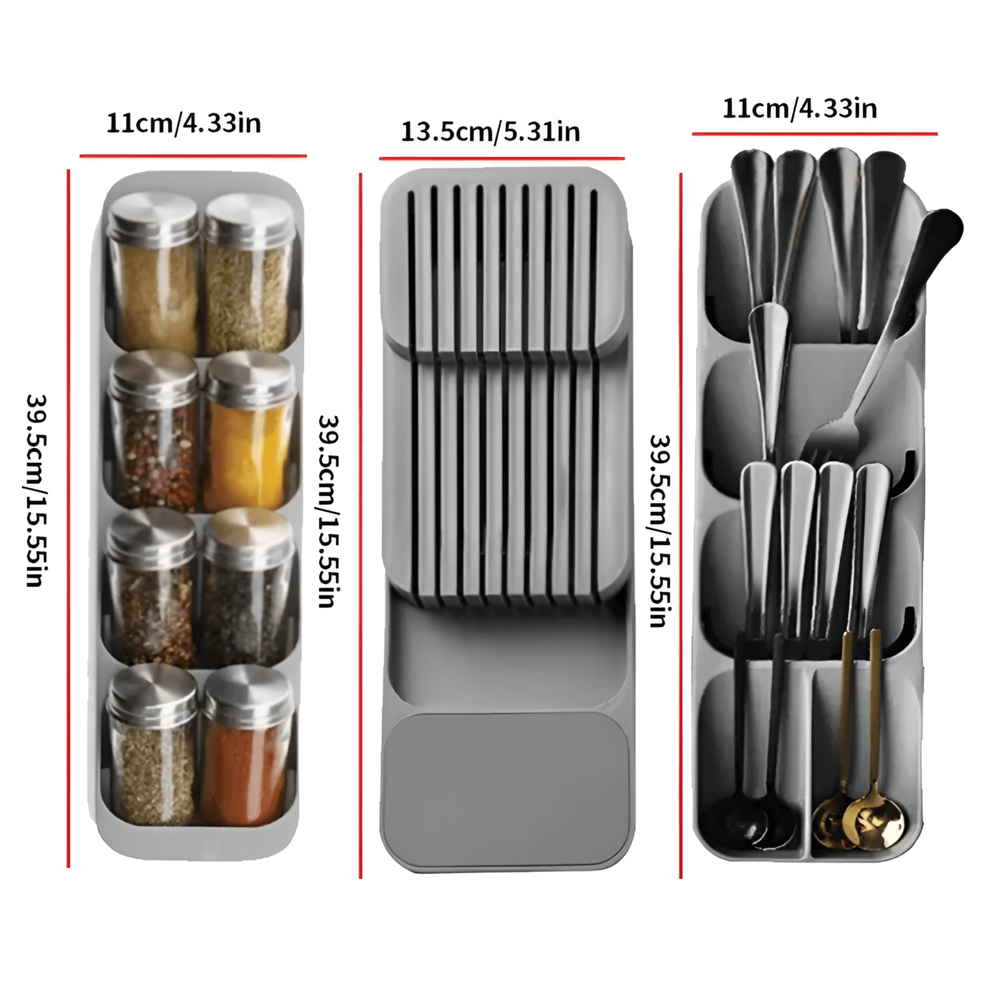 Måtten är anpassade för att passa i de flesta vanliga kökslådor – men kontrollera gärna dina lådmått i förväg för att vara säker.