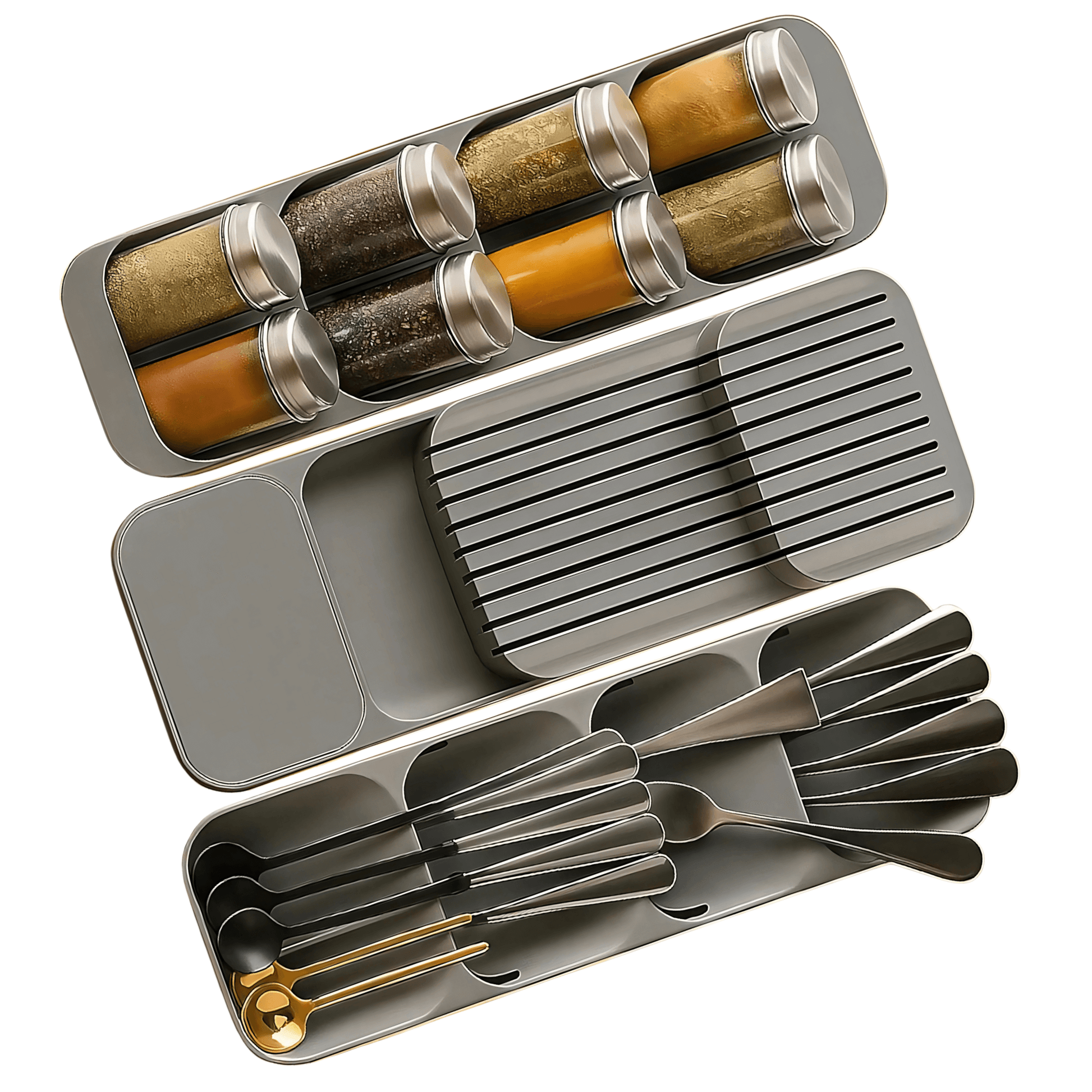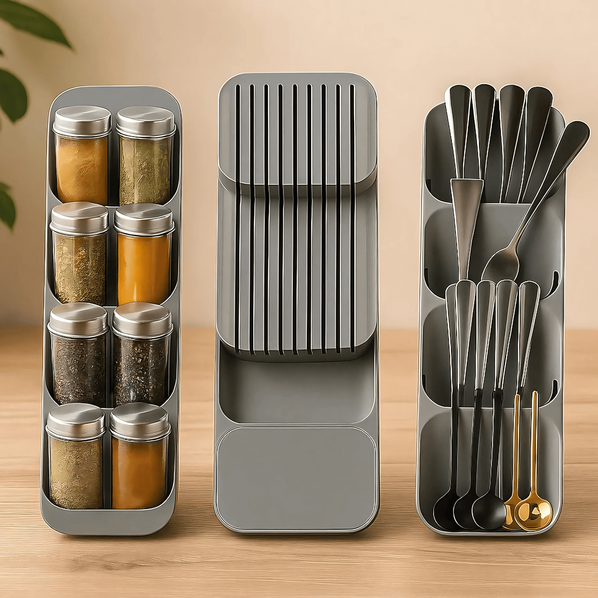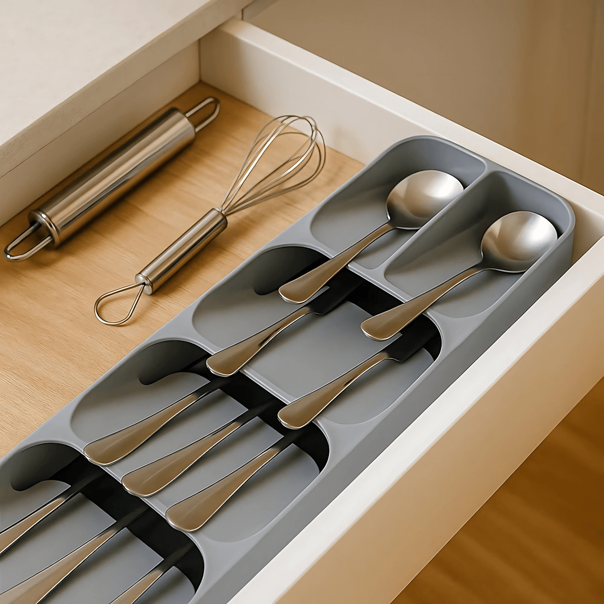 SpaciFit – Besticklåda för Lådor med Fast Indelning och Kompakt Förvaring av Köksredskap