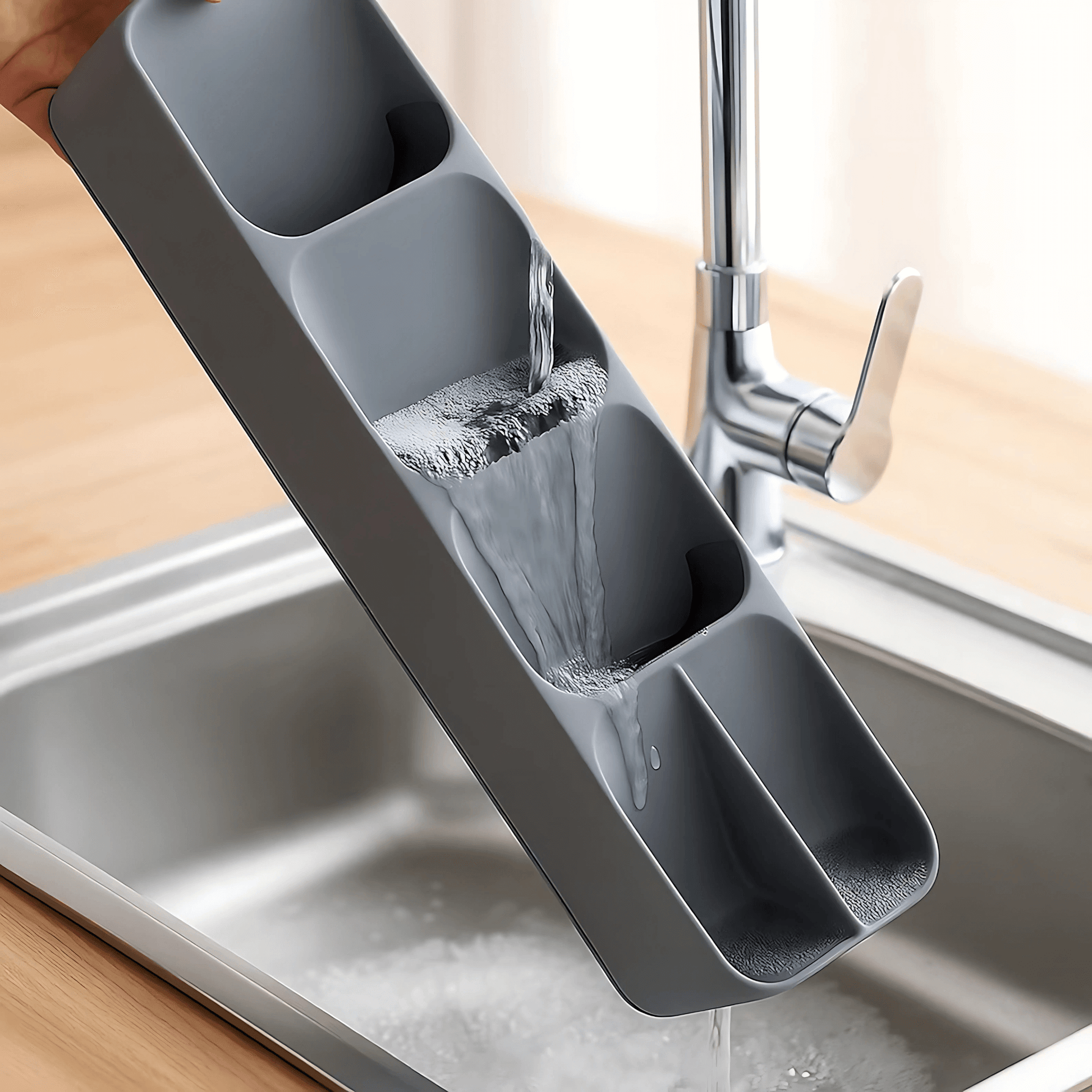 Den neutrala färgsättningen gör att organisatören smälter in i de flesta köksmiljöer – för dig som föredrar funktion utan att det tar över visuellt.