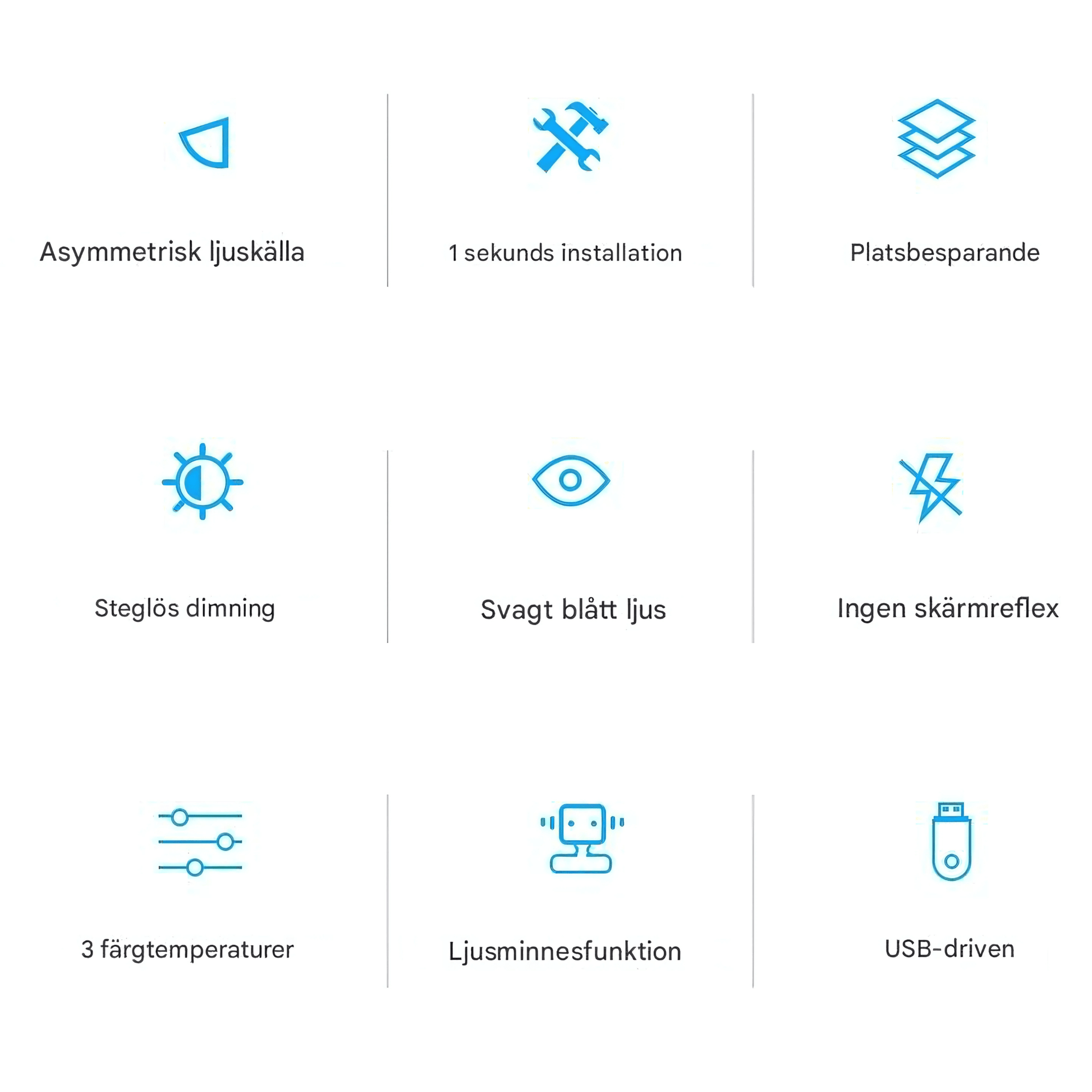 • 🌙 Antireflex-teknik – riktar ljuset nedåt mot arbetsytan utan att blända skärmen